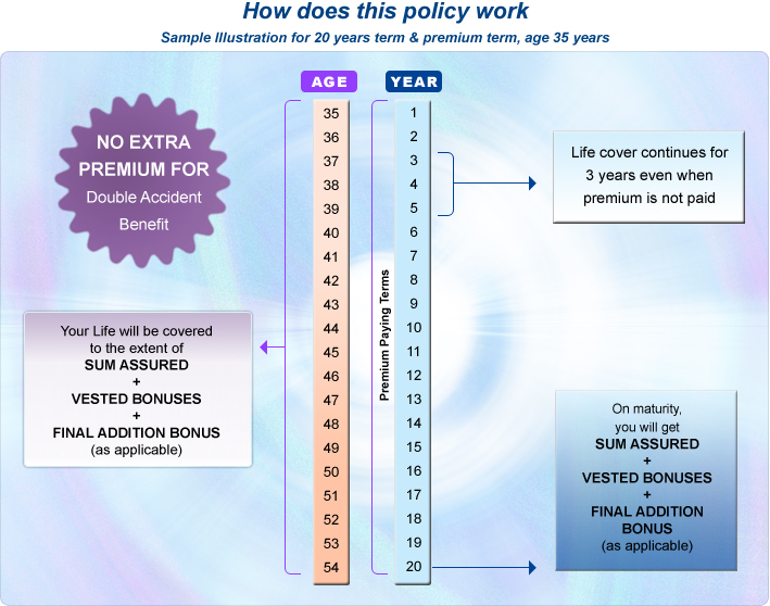 • MATURITY - Sum Assured + Bonus + Final Addition Bonus (as applicable) will be paid