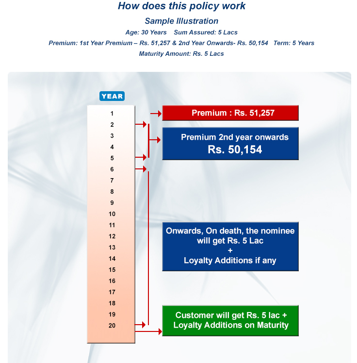 • This plan offers Sum Assured at regular intervals depending on the term of the policy that customer choose