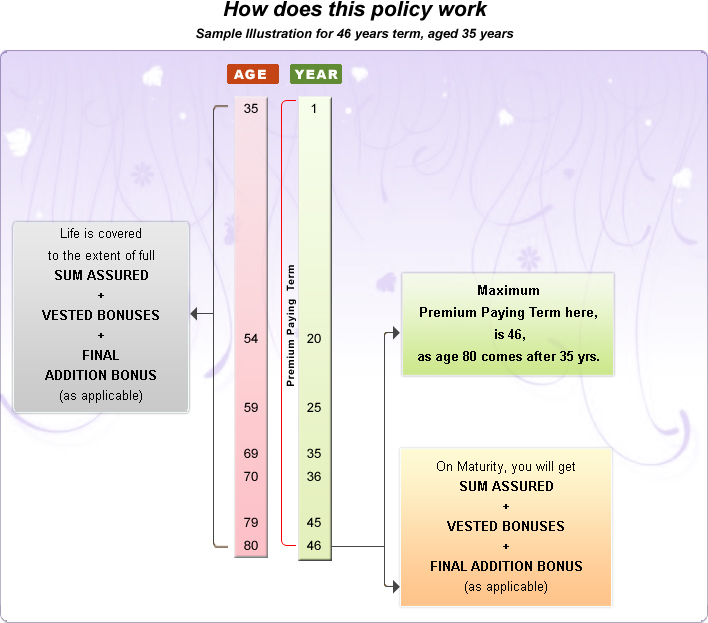 Lifetime cover to the extent of Full Sum Assured + Bonus + Final Addition Bonus (as applicable)