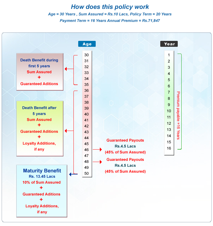 • This plan also offers add on benefits like Additional Life Cover, Accidental Death & Disability Benefit, Critical Illness Cover & Premium Waiver Benefit
